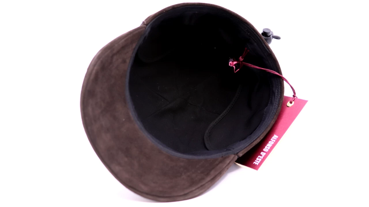 De klep en de achter zijde van de pet zijn afgewerkt met geruwd leder, wat de pet een mooi en luxe uiterlijk geeft.