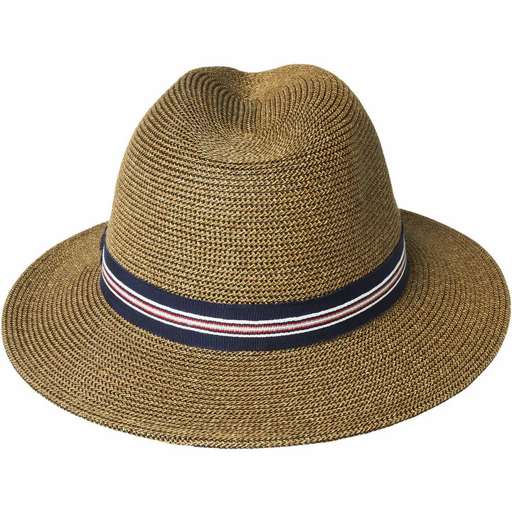 De Hester is een stijlvolle, lichtgewicht Toyo gevlochten fedora met een centrale deukkroon en met een standaard omgeslagen rand. Afgewerkt met een gestreept grosgrain lint voor stijl en een comfortabele zweetband.
