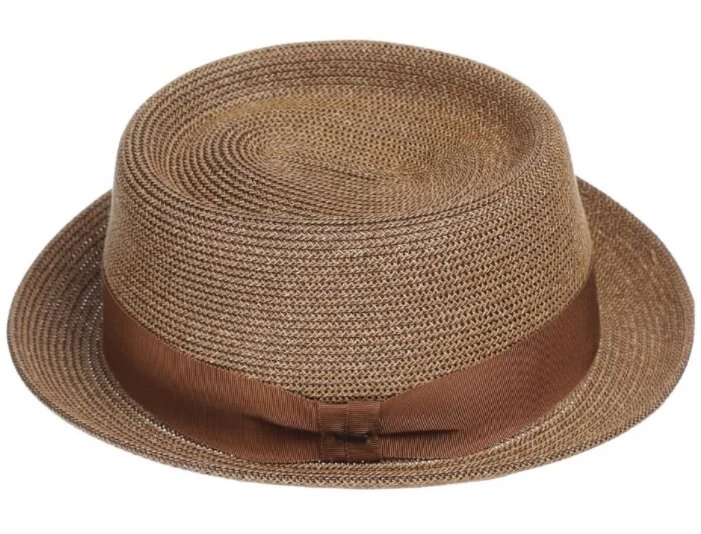 De Bailey of Hollywood Waits is een “smooth and sleek” gevlochten pork pie met een traditionele telescopische kroon, afgewerkt met een grosgrain lint en een omhoog gekrulde rand.