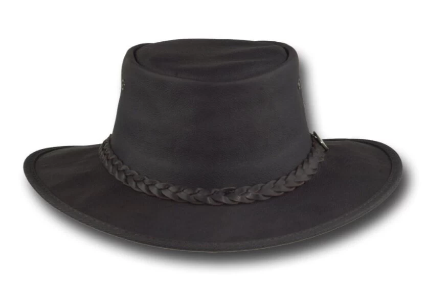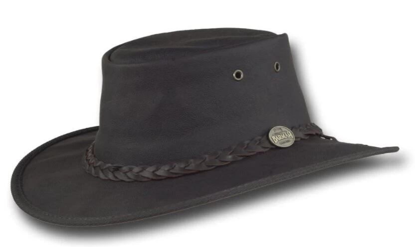 Deze kangoeroe lederen outdoor hoed is van Barmah uit Australië.