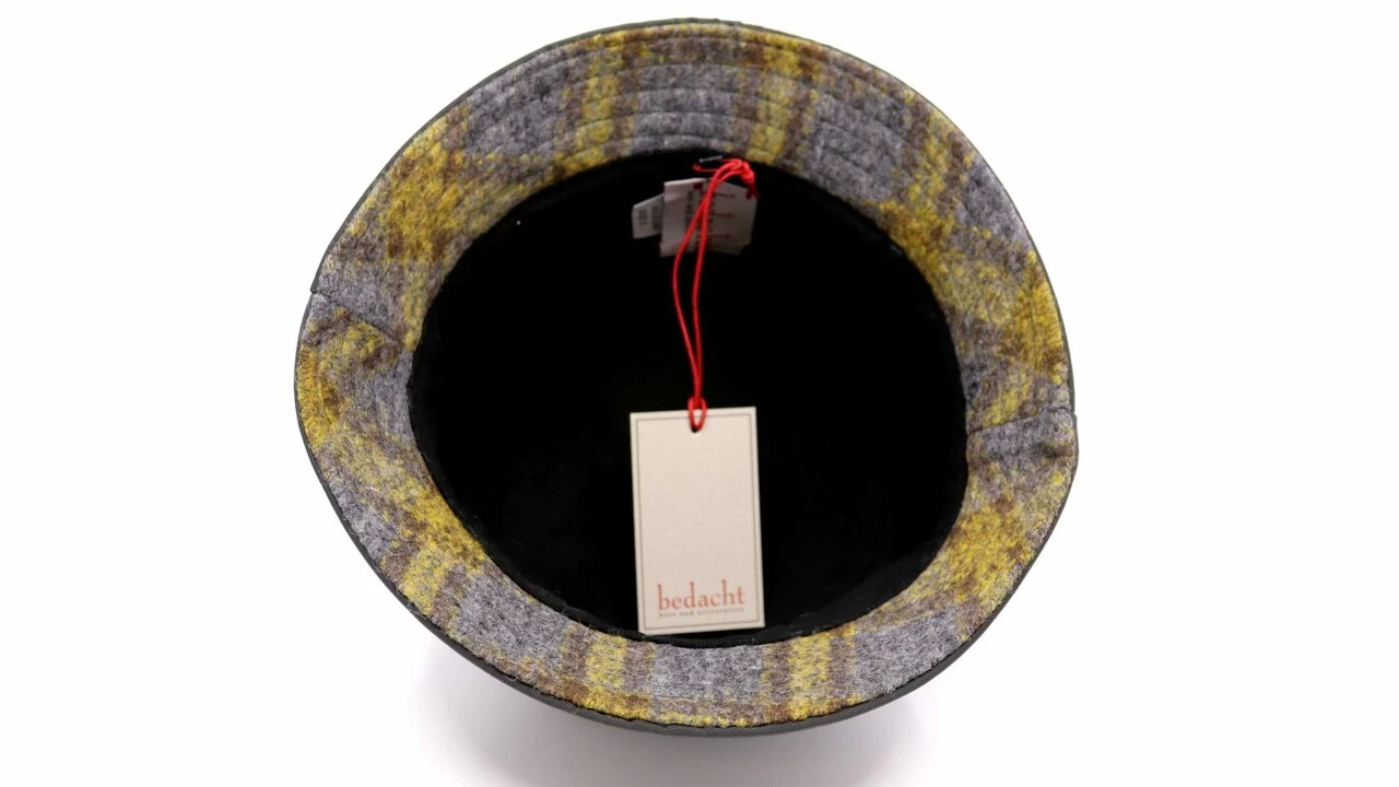 Deze regenhoed is gemaakt van 90% nylon en 10% wol. De randbreedte is 5 centimeter en aan de onderkant van de rand zit een wollen geruite stof. De hoed is gevoerd met een fleecevoering en komt in maat small en medium.