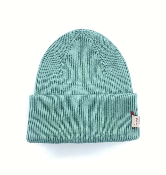 Gebreide beanie van Bedacht, ontworpen in Duitsland en geproduceerd in Italië.