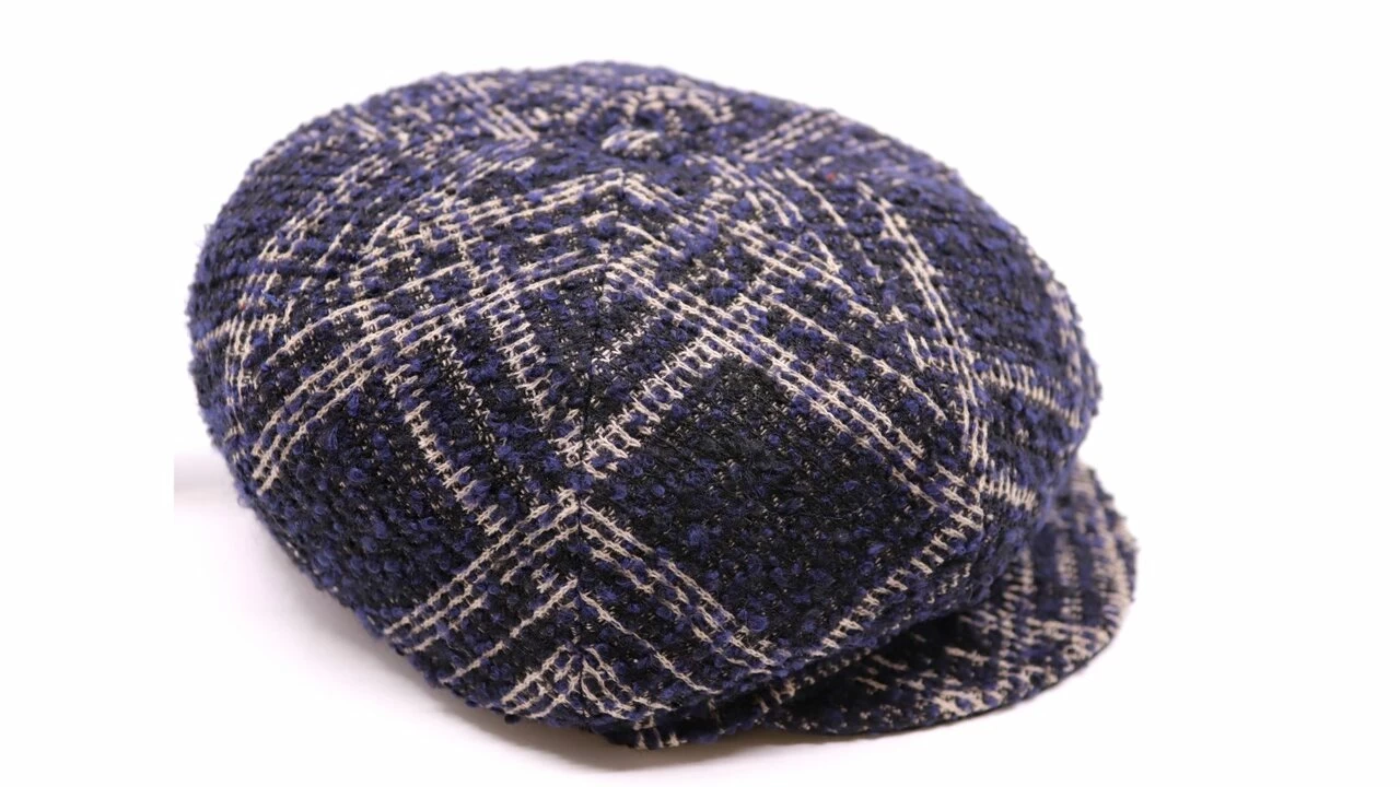 De pet is gemaakt van 51% viscose, 10%katoen, 15% polyester en 24% lurex. De voering is van katoen gemaakt. De pet is afgewerkt met een velours rand en klep.