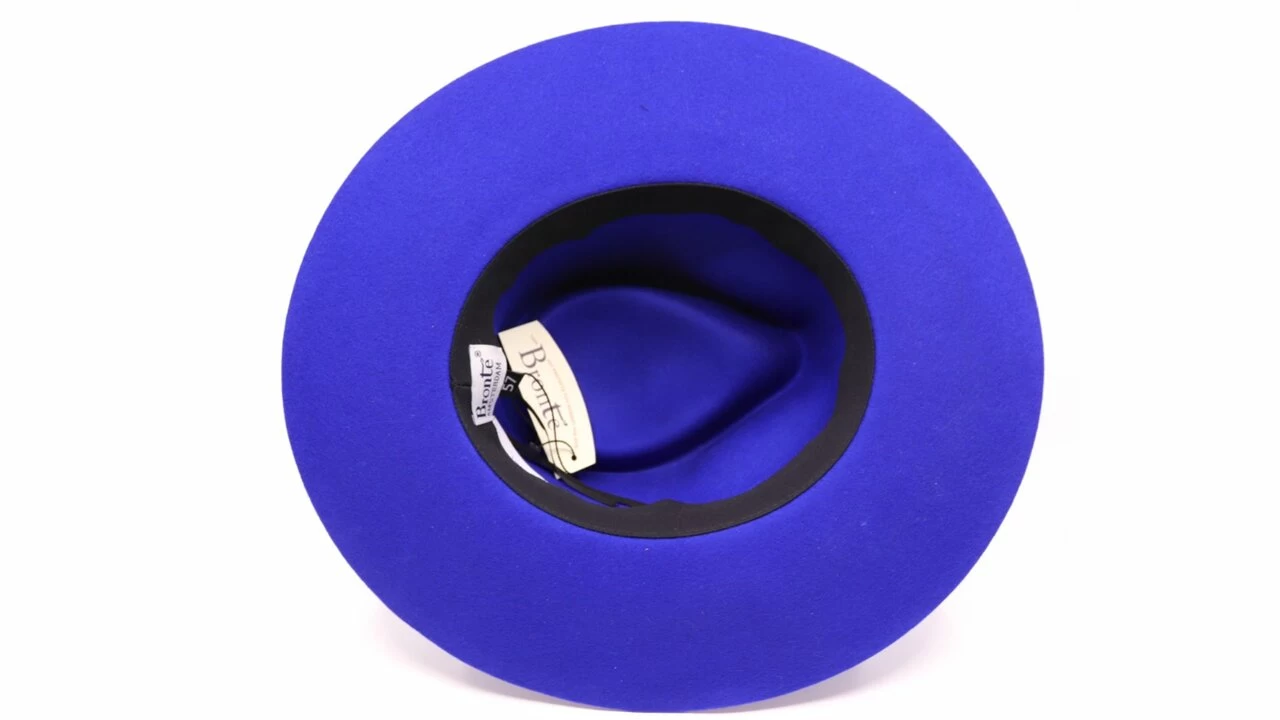 De rand van Bowie is stijf geâpretteerd wolvilt van 8 cm breed. Afgewerkt met een zwart ribslint. In de hoed zit een aantreklint verwerkt waarmee u de hoed wat strakker kunt maken.