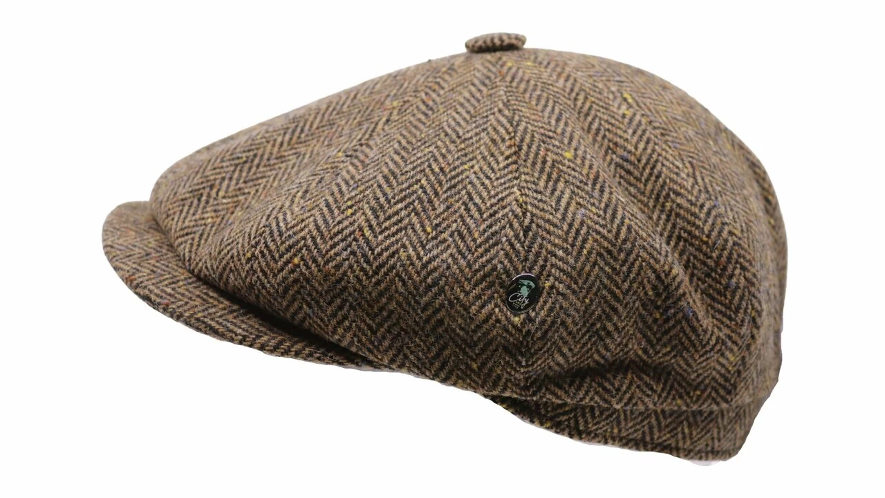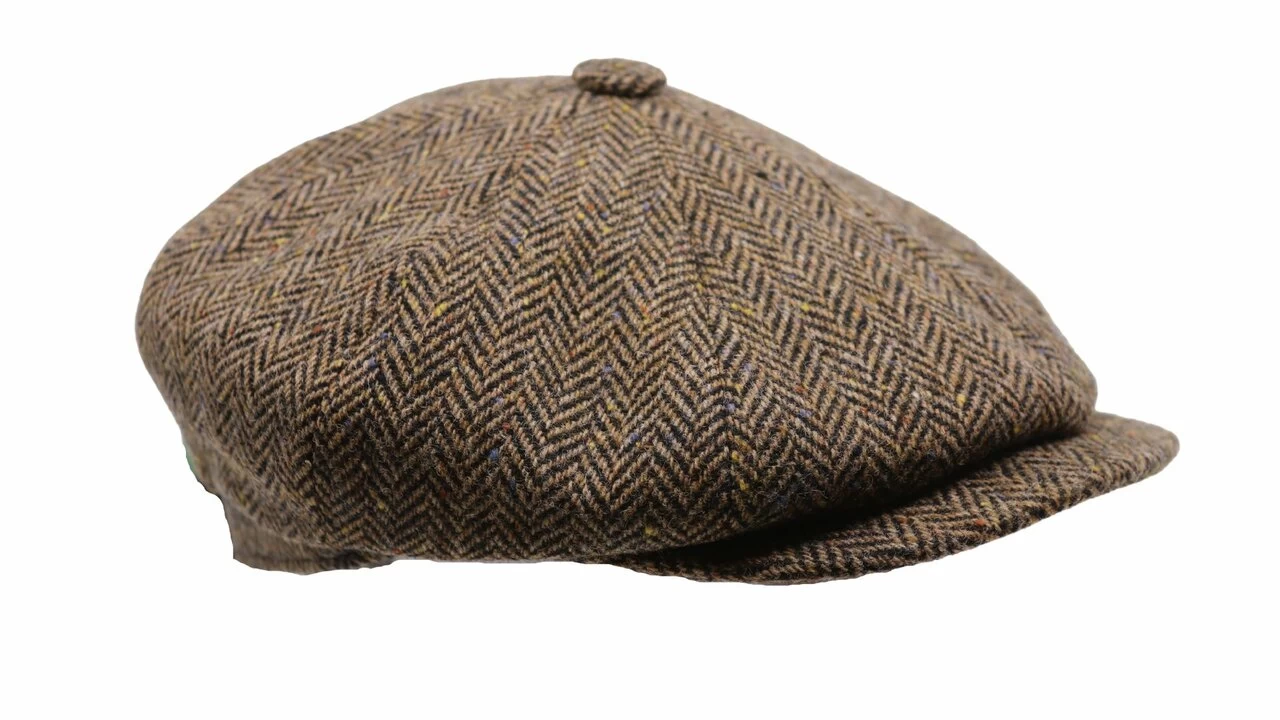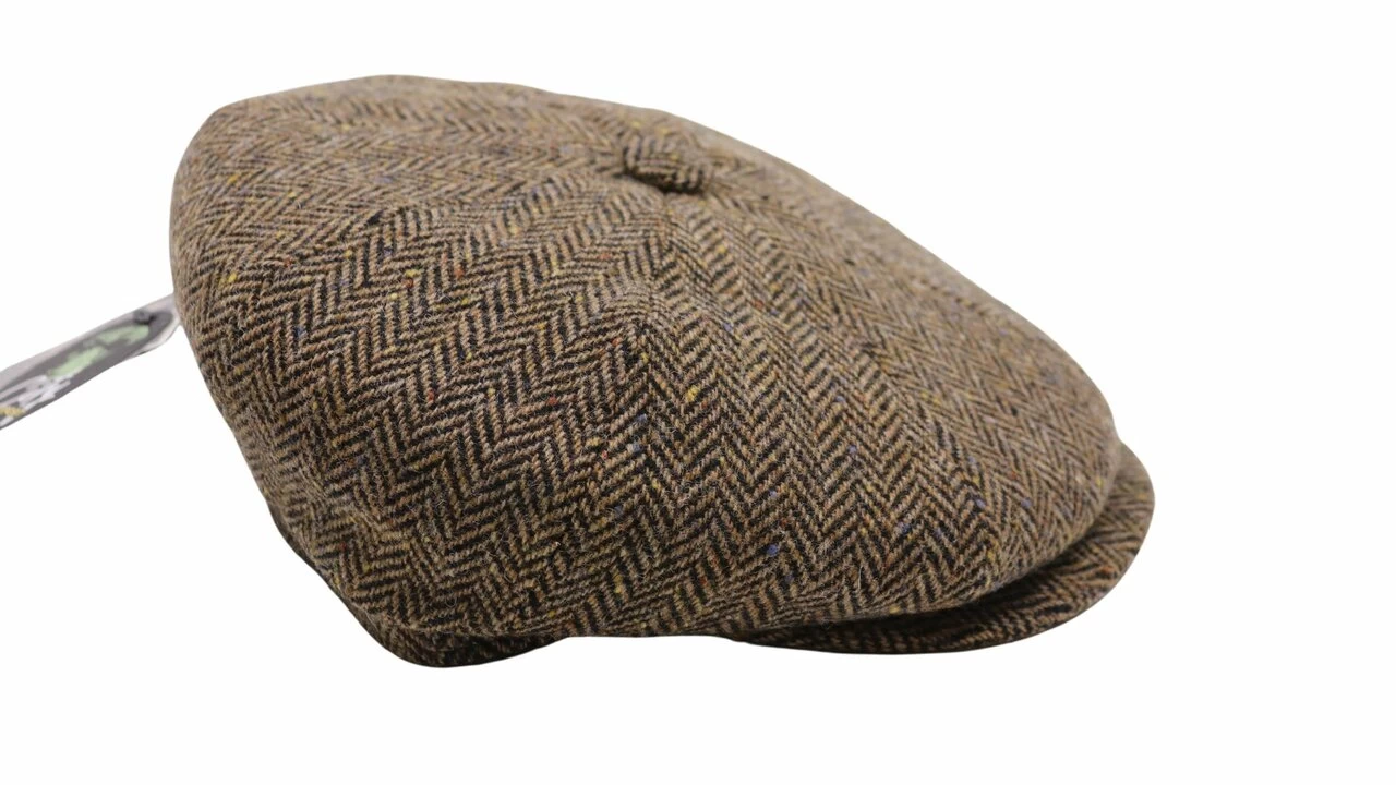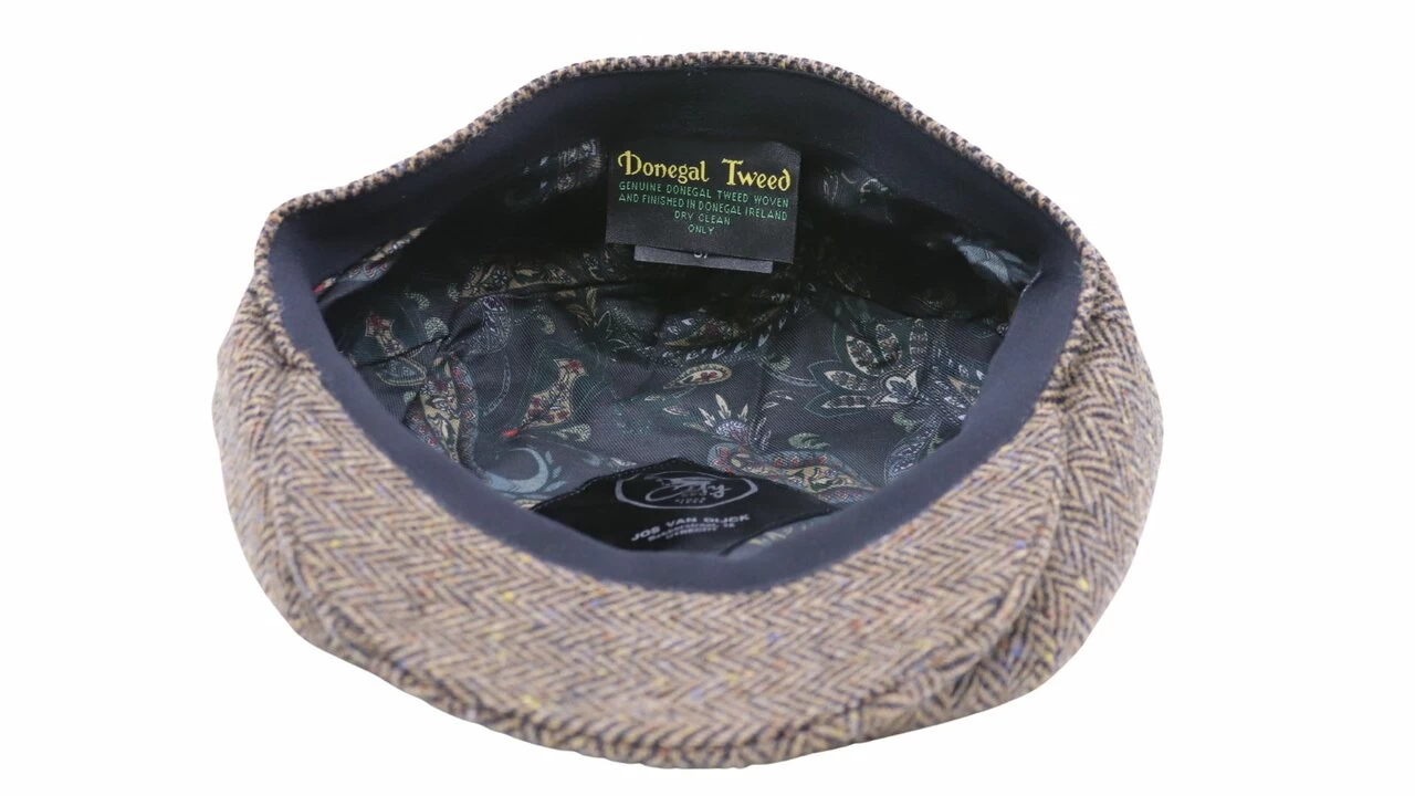 De pet is gemaakt van 100%Â wol, Donegal Tweed, geweven in Donegal Ierland. Donegal Tweed is een Ierse tweed met een spikkel uiterlijk en staat bekend om zijn warmte en duurzaamheid.Â