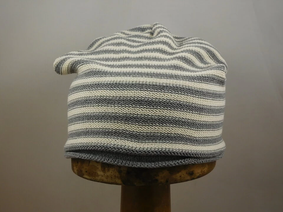 Fiebig Beanie Katoen Streep Antracietgrijs