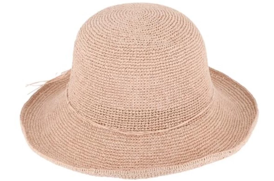Een vrouwelijke zomerse hoed van Fiebig , ontworpen in Duitsland en geproduceerd in Azië.