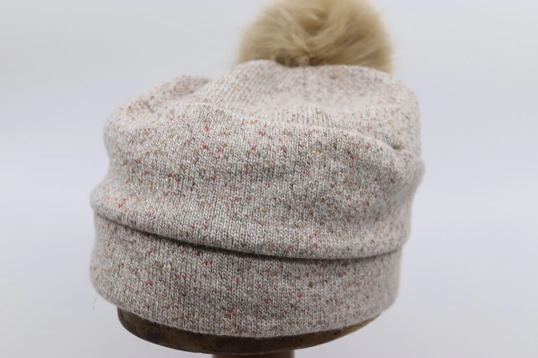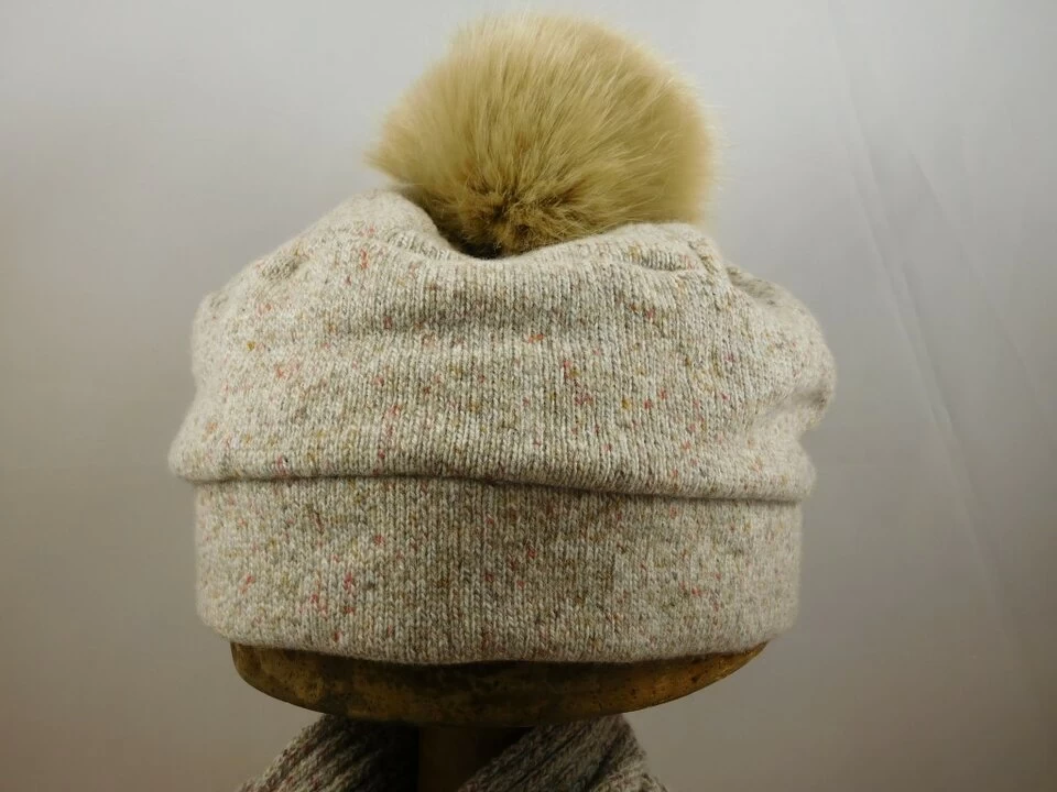 De muts is afgewerkt met een imitatie bont pompom, wat nauwelijks van echt te onderscheiden is. Door het materiaal en pasvorm is de muts soepel en erg prettig in de winter. De muts is gemaakt van 92% wol en 8% cashmere. Hij is gevoerd met fleece.