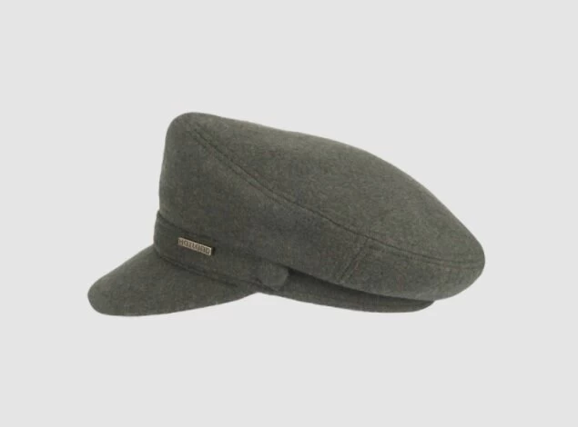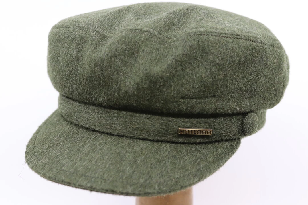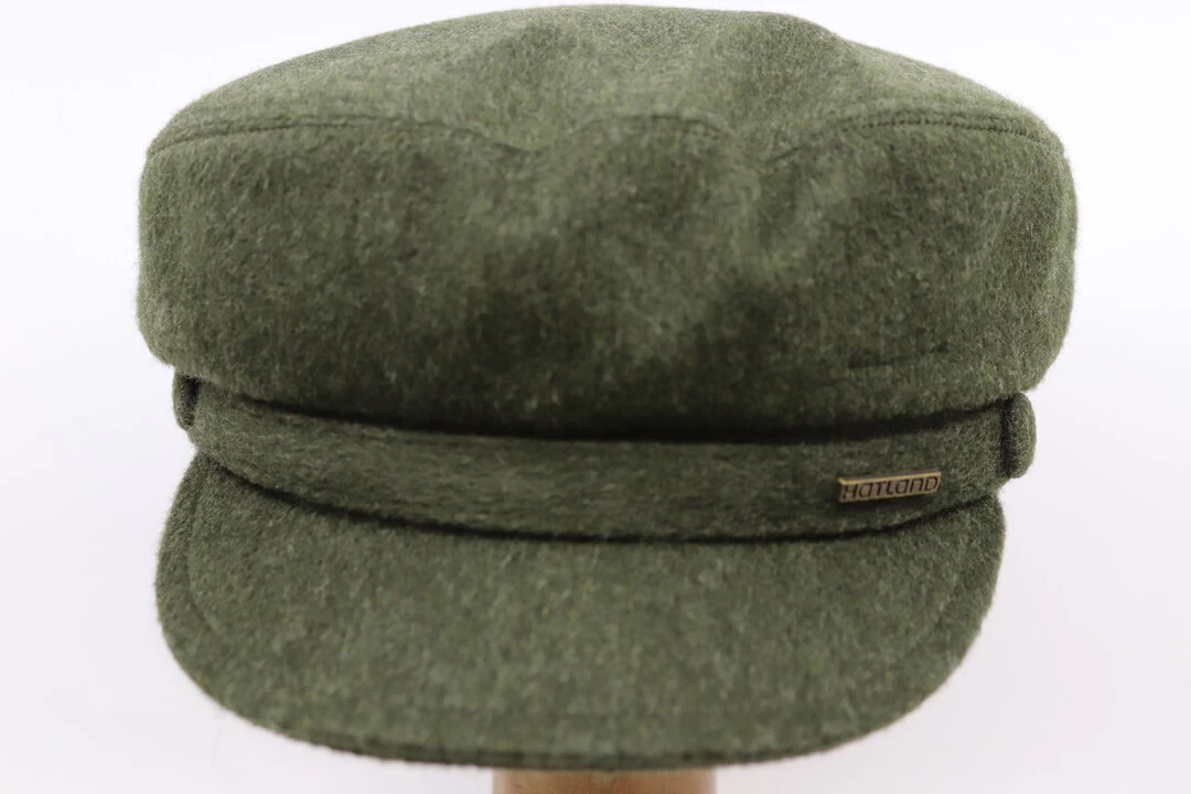 Een fashionable schipperspet van Hatland uit Nederland, gemaakt van een wollen stof met een katoenen binnenvoering. Het model is stevig met een rechte, harde klep.