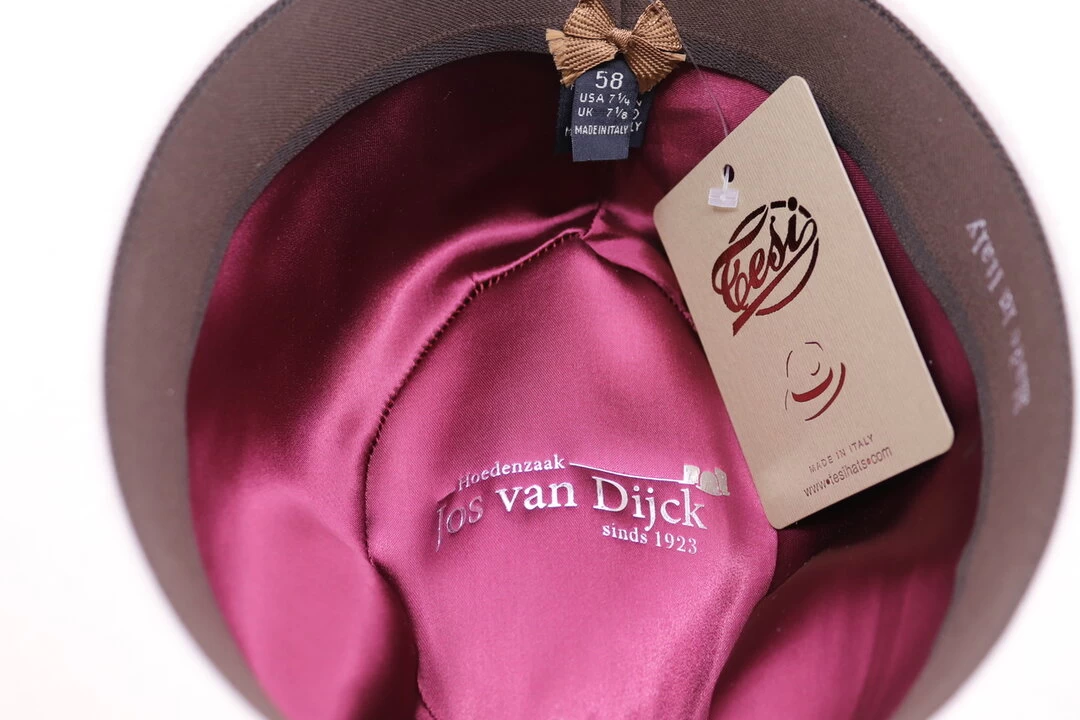 Een prachtige fedora hoed met brede rand is in samenwerking met de beroemde hoedenproducent Luige&Guido Tesi uit Florence (Firenze) waar dit is ook is ontworpen en geproduceerd.