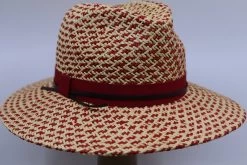 Van 100% cellulose, afgewerkt met een ribslint en een dunne lederen band.De rand is omgeslagen, dit geeft de hoed extra versterking. De rand is 8 cm breed en de kroon is 13 cm hoog.