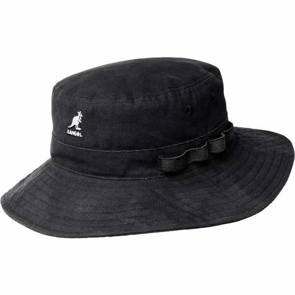 De Kangol Jungle Bucket Hat is gemaakt van een katoenen canvas in een bucket – vissershoed model met een bredere (doorgestikte) rand van 7,5 cm. Het heeft een kinkoord, zodat je altijd zeker weet dat je je hoed niet snel kwijt zult raken, waar je ook gaat. De koorden zijn afgewerkt met een gekleurd einde voor een extra vleugje plezier.