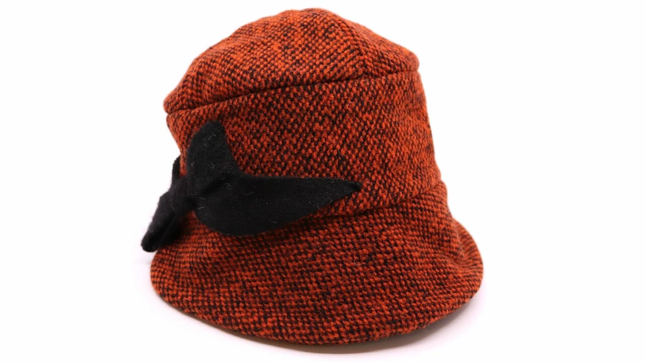De Cloche is afgewerkt met een strik die zich aan de rechterkant bevindt. De rand van de cloche is oneven, aan de achterkant is de rand 4,5 cm breed en loopt langer uit naar de voorkant tot 8 cm breed.