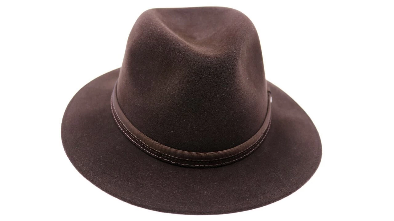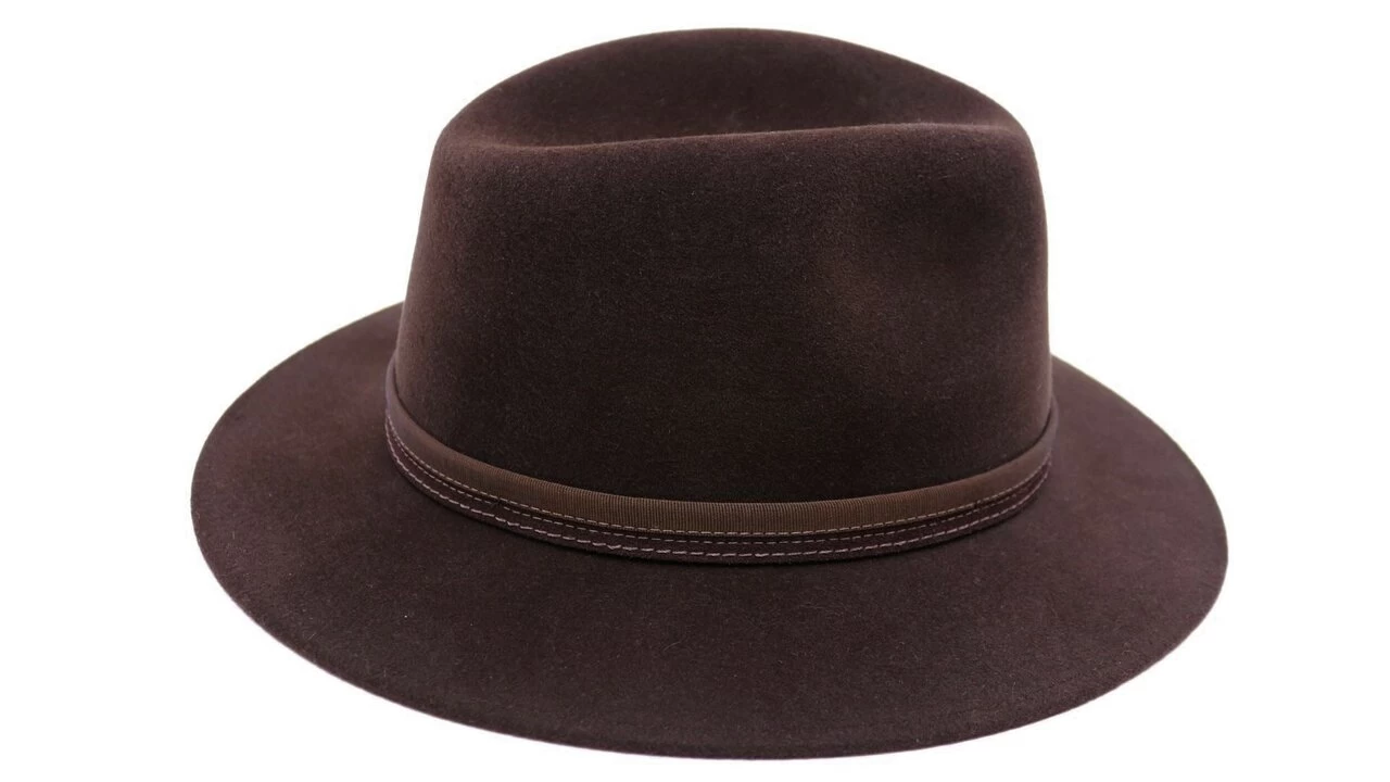De hoed is gemaakt van premium haarvit, het vilt heeft een speciale behandeling gehad voor een suede/velour finish ‘camoscio’ genaamd.
