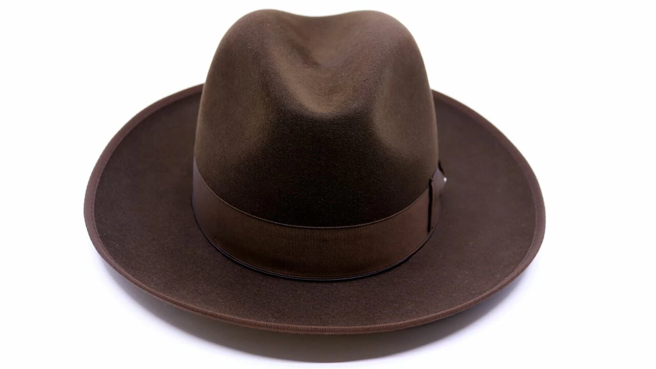 Het vilt van de hoed is gemaakt van 70% haarvilt; konijnen en 30% bever.