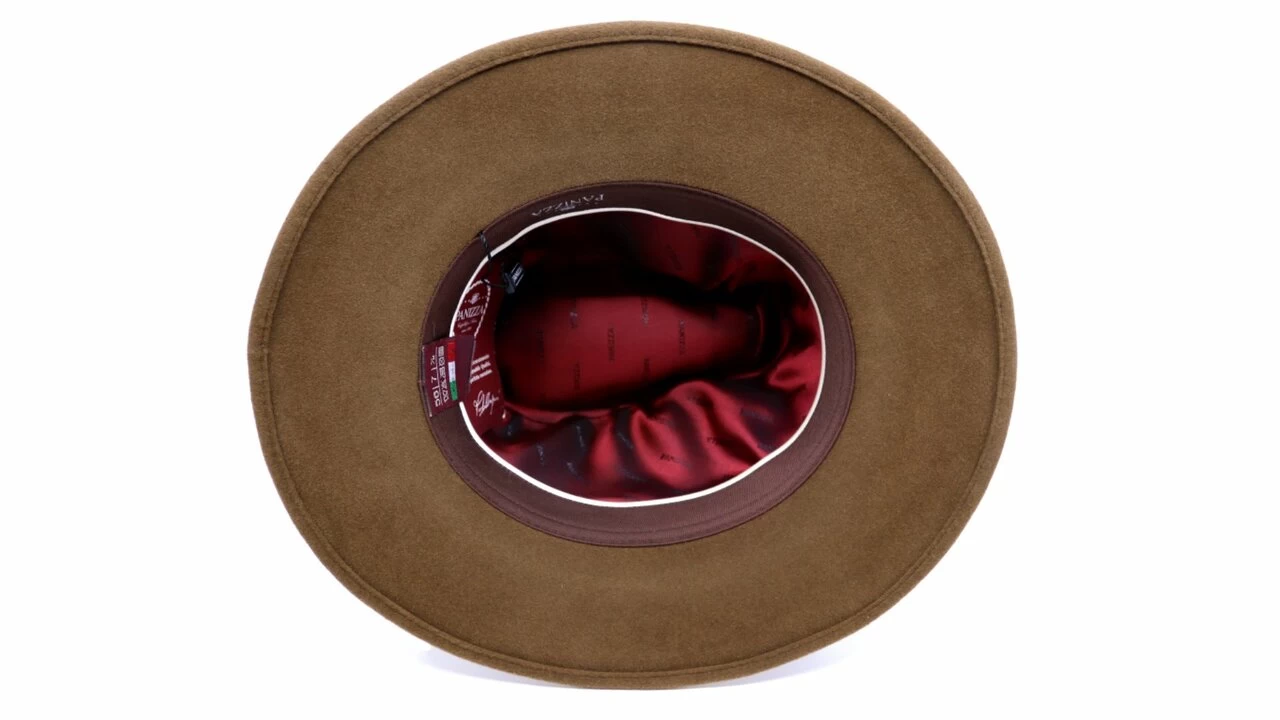 Gemaakt van premium haarvilt, het vilt heeft een speciale behandeling gehad voor een suede/velour finish, dit wordt door de leverancier aangeduid als een ‘camoscio’ kwaliteit.