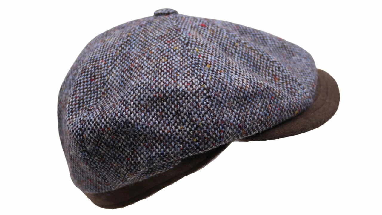 De pet is gemaakt van 100%Â wol, Donegal Tweed, geweven in Donegal Ierland. Donegal Tweed is een Ierse tweed met een spikkel uiterlijk en staat bekend om zijn warmte en duurzaamheid.Â
