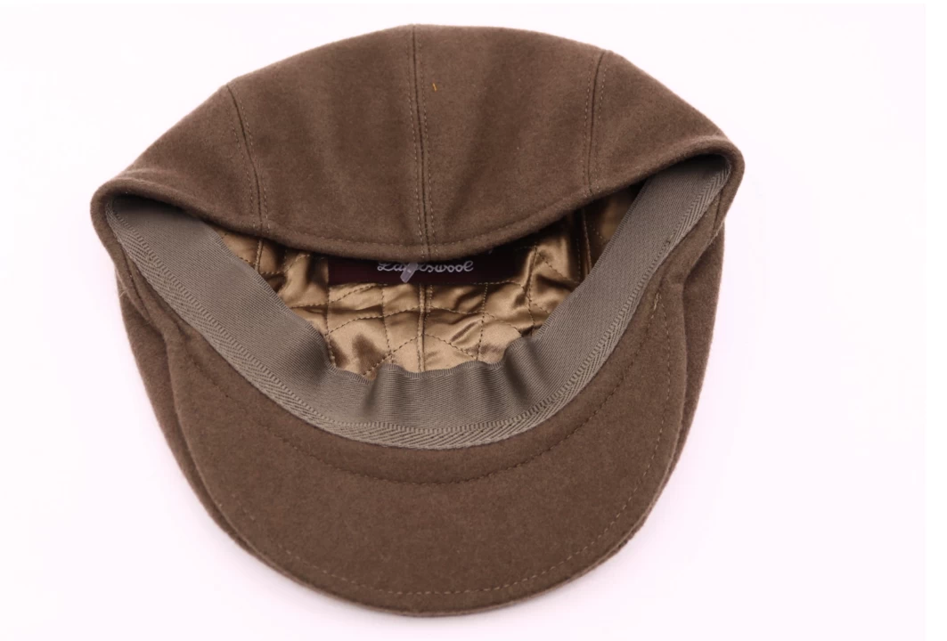 Het materiaal is van 100% scheerwol en de pet is afgewerkt met een katoenen voering en een medium stevige klep.