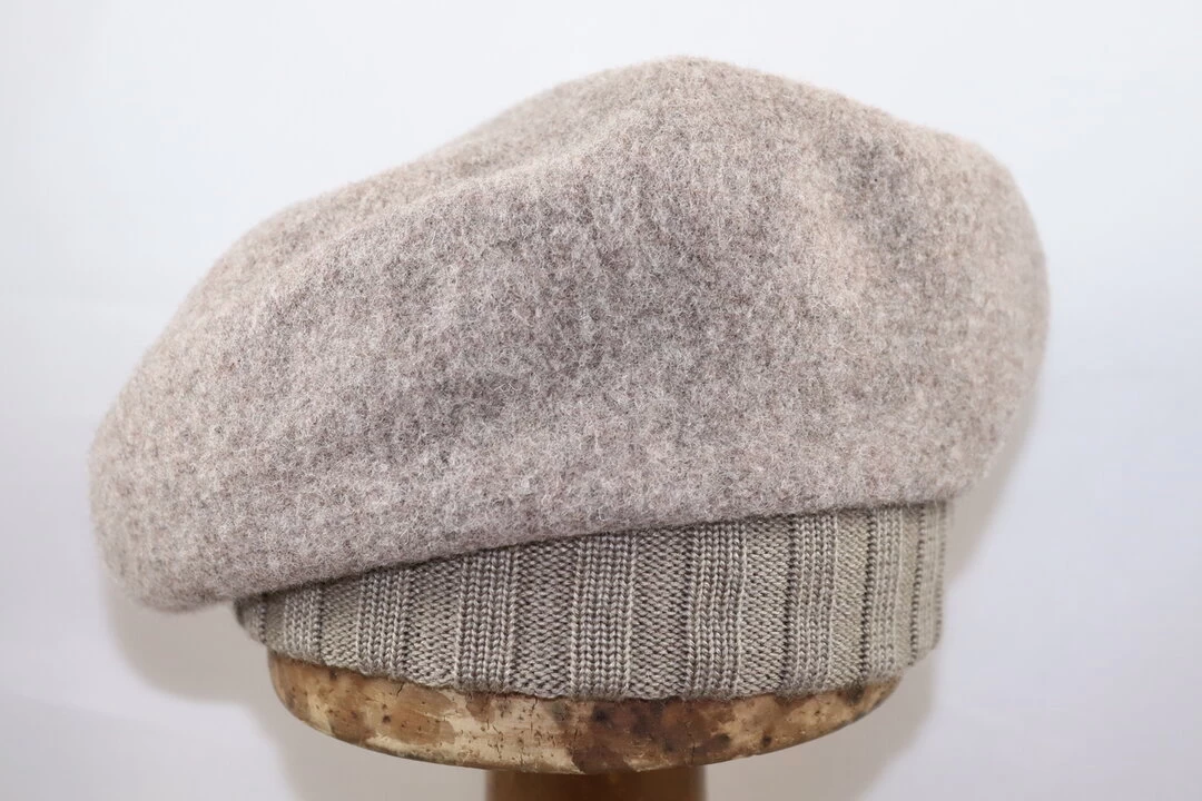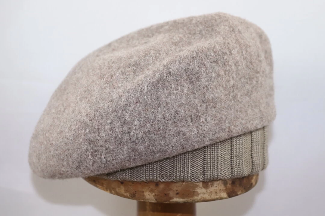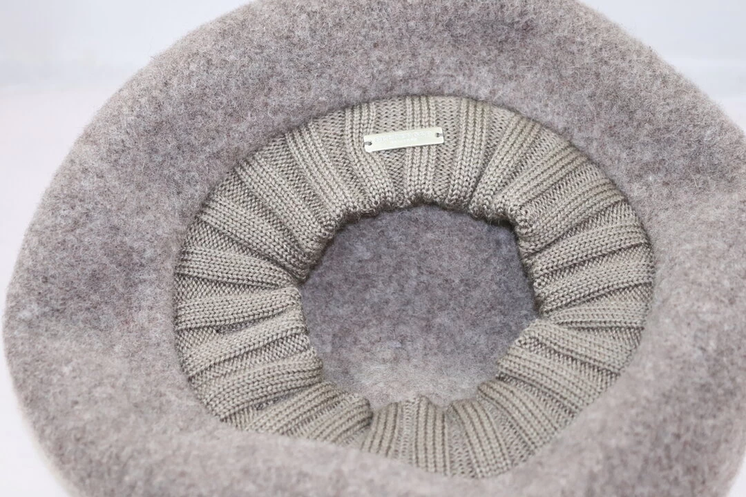 Een warme en stijlvolle baret van wolvilt met gebreide rand.
