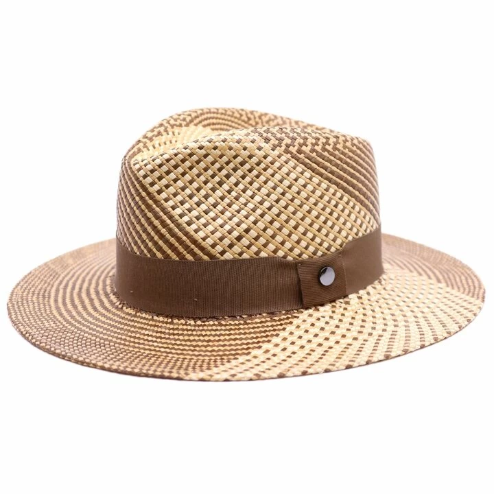 Bij deze hoed is het panama gevlochten met 3Â kleuren in een prachtig patroon.