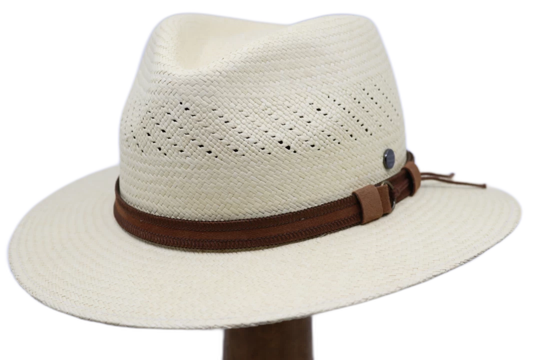 Een gave handgevlochten Panama fedora style hoed van Vintimilla.